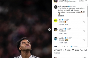 罗德里戈赛后社媒写道:“‘风雨过后,阳光总会重现,保持信念🙏🏾’感谢伯纳乌,2026年再见。”