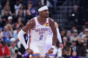 上半场比赛,雷霆进攻端打不开局面时依然靠亚历山大个人能力止血,他出战18分钟,9中5(三分1中1),罚球6中5砍下16分2篮板2助攻1抢断。
