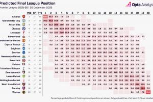 Opta超算最新英超夺冠概率: