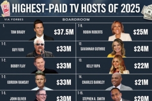体育资讯12月29日讯 美媒Boardroom报道,根据福布斯数据他们统计了2025年美国各界主持人的工资排名。