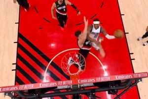 是个好防!布威突破造成乐福犯规 开拓者挑战成功拿回球权